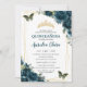 Convites Quinceañera Dark Teal Peacock Borboletas