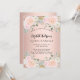 Um convite moderno, elegante e glamoroso para uma Quinceañera, festa de 15 anos. Um fundo de rosa ouro com flores cor-de-rosa claro, rosas. O nome é escrito com uma fonte moderna de letra manuscrita. Personalize e adicione os detalhes da sua festa.