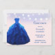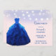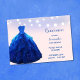 Surpreenda todos os seus hóspedes com este design mágico, azul de denim e azul de blush para a doce honra de quinze. A princesa de diamante azul brilha vestido com motins reluzentes, sob luzes brancas de cordas em fundo azul.
