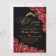 Na moda moderno Quinceanera Black Red and gold 15 com um convite de aniversário com belas rosas e poeiras de ouro com um efeito de derrame de ouro (o ouro é um efeito digital, não uma folha de ouro!) e uma caligrafia moderna. Clássica Quinceanera, roteiro elegante e convite de impressão de aniversário para flores quentes.