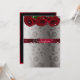 Belas rosas vermelhas com pequenos corações brancos no padrão floral de cinzas elegantes. Banner de fita de satélite vermelho para texto e borda no verso. Mude o texto para "Doce Dezesseis", "Bat Mitzvahs" ou qualquer texto que precise para comemorar.