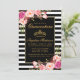 Quinceanera Cartão de Convite Dourado Coroa, Cor-de-Rosa, Stripídica Rosa