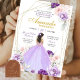 Princesa Mexicana Rosa Púrpura Quinceañera Convite, Púrpura Lilac Floral Quince, Coroa Dourada Quince Tiara, Arca Geométrica Mis Quince Anos, Doce 16ª Quinceanera Birthday Girl