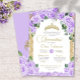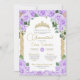 Convites Quinceanera Dourada Elegante Rosa Floral Roxo-Cla