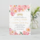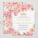 Convites Quinceañera Dourada Floral Rosa Elegante