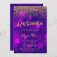 Convites Quinceanera Dourada Glitter Roxo Moderno