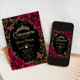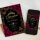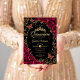 Convite para comemoração de Quinceanera negra, dourada e burgundy. Recursos, fontes de script, borboletas douradas, rosas de aquarela e tiara. Perfeito para uma elegante celebração de glam estilo princesa. Personalize com seus próprios detalhes. Impressos convites Zazzle ou modelo de impressão digital instantânea para download.