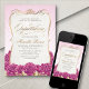 Espalhe um borrão de romance de conto de fadas em sua noite de quinceañera com este romântico rosa de flores e design de marmelos de ouro. A trabalho de arte sonhadora e a elegante tipografia dão a esta design uma sensação mágica e elegante. Perfeito para um conto de fadas temido ou clássico celebração da quinceañera. Peça seus convites impressos ou baixe seus convites digitais agora por uma noite que ela nunca esquecerá!