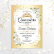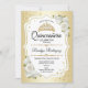 Dourado convite para comemoração da Quinceanera branca e negra. Apresenta fontes de script, rosas brancas, tiara e confetti. Design clássico com ouro falso brilhante. Perfeito para uma elegante celebração de glam.