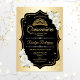 Dourado convite para comemoração da Quinceanera branca negra. Apresenta fontes de script, rosas brancas, tiara e confetti. Design clássico com ouro falso brilhante. Perfeito para uma elegante celebração de glam.