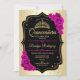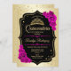 Caracteriza fonte script, rosas rosa quente, tiara e confetes. Design rosa fúcsia clássico com dourado brilhante falso. Perfeito para uma celebração glamorosa elegante.