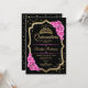 Dourado convite para comemoração de Quinceanera rosa-preto. Apresenta fontes de script, rosas cor-de-rosa pastel, tiara e confetti. Design cor-de-rosa pincelada e elegante com ouro brilhante. Perfeito para uma elegante celebração de glam.