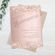 Um convite moderno minimalista da Quinceañera. fundo rosa de gradiente dourado e a palavra Quinceanera escrita com letras grandes. Decorado com falso brilho, confetti. Personalize e adicione um nome e detalhes da parte.