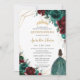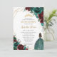 Convites Quinceañera Emerald Green Burgundy Floral Dourada