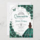 O convite para comemoração da Quinceanera, verde-esmeralda, prata e branca. Recursos, garota morena em vestidos de vestido de bola, fonte de script, borboletas, rosas de aquarela e tiara. Perfeito para uma elegante celebração de glam estilo princesa. Personalize com seus próprios detalhes. Impressos convites Zazzle ou modelo de impressão digital instantânea para download.