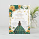 Convites Quinceañera Emerald Green Floral Girinas Douradas