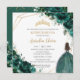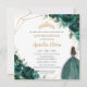 Convites Quinceañera Emerald Green Floral Princesa Dourada