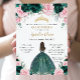 Convites Quinceañera Emerald Green Pink Princesa Floral