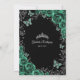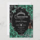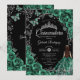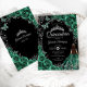 Convite para comemoração de Quinceanera, verde-esmeralda, preto e prateado. Apresenta uma garota morena em vestidos de capa de bola, fonte de script, borboletas, rosas de aquarela e tiara. Perfeito para uma elegante celebração de glam estilo princesa. Personalize com seus próprios detalhes. Impressos convites Zazzle ou modelo de impressão digital instantânea para download.