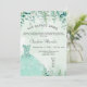 Um convite de tendência para uma Quinceañera, festa de aniversário 15, tema de floresta encantado. Um fundo de cor aquosa verde com samambaias e eucalipto verde, um vestido verde. O nome é escrito com um moderno estilo escrito à mão. Personalize e adicione os detalhes da sua festa.