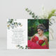 Quinceañera Eucalyptus Greenery Foto Floral Convite apresenta um eucalipto simples, mas elegante, verde com a sua Quinceañera Convite Informação abaixo. Personalize editando o texto nas caixas de texto fornecidas e adicionando sua foto favorita. Projetado para você por ©Evco Studio www.zazzle.com/store/evcostudio