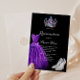 Coroa de diamante e calçados emparelhados com uma bela ilustração de vestido roxo para um convite perfeito para Quinceañera. Você pode mudar a cor do vestido de bonito cor, apenas entre em contato conosco através de bate-papo ou email e ficaremos felizes em ajudar. Verifique a seleção de outras cores em nossa loja.