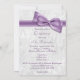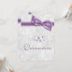 A Elegante Quinceañera para celebrações de Festas de aniversário para garotas adolescentes. 15º / Doze convites à festa de aniversário. Belo fundo de cor damasco branca com uma imagem bonito, roxa / lilac / lavanda arco e fita. Estes convites fascinantes, chicos e clássicos são lindamente sofisticados e são decorados/impressos em ambos os lados. NOTA: todos os convites no Zazzle têm imagens impressas em formato plano. Imagens de arco e fita adquiridas de designs digitais por elena. Se precisar de assistência para personalizar o seu convite, por favor contacte-me através da minha loja e eu terei todo o prazer em ajudar.