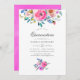 Rosas e peônias florais, cor-de-rosa-quente, convidam-se com sotaques de roxo, turquesa, azul e violeta.