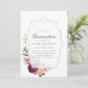 Boho floral quinceanera convite com peonias e rosas com estrutura geométrica dourada personalizável para seus detalhes de evento.