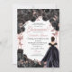 Convite de Aniversário para Quinceanera Floral, Dourada Elegante, Negra e Rosa