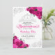 Elegante Fuchsia Rosa Silver Floral Quinceanera Convite de Aniversário