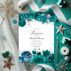 Teal - turquesa e o convite para o casamento floral de cor d'água prateada. Ideal para qualquer tema ou casamento de jardim. O código QR no verso direciona para o seu local de casamento onde o pessoas pode aprender mais e rsvp.