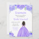 Este convite da Quinceanera apresenta flores florais roxas brilhantes e uma bela princesa com pele escura e um vestido elegante. Isto é perfeito para uma festa de aniversário de Quinceanera.