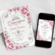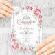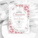 Convite para comemoração de Quinceanera rosa, prata e branca. Recursos, fontes de script, borboletas, rosas de aquarela e tiara. Perfeito para uma elegante celebração de glam estilo princesa. Personalize com seus próprios detalhes. Convites Zazzle impressos ou modelo de impressão digital imprimível para download instantâneo