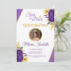 Anuncie sua quinceañera em estilo com esta chic Salve o cartão de Datas. Apresentando flores roxas ricas, sotaques de ouro elegantes, e uma design feminina moderna, ele dá o tom perfeito para uma inesquecível celebração de 15.