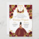 Convite de Aniversário para Quinceanera Floral Vermelha e Dourada