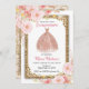 Convites Quinceanera, Flores Rosa Blush Douradas, rosa