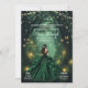 Convide os entes queridos para uma noite de elegância e magia com este convite da Floresta Emerald Quinceañera. Esta design cativante apresenta uma jovem mulher num luxuoso e profundo vestido verde esmeralda em pé numa floresta mística cheia de lanternas brilhantes, borboletas ouros e luzes cintilantes. As cores ricas e a paisagem encantadora tornam-na perfeita para uma celebração de años de marmelho inspirada em conto de fadas. Personalize com facilidade adicionando o nome da sua filha, a data do evento e os detalhes da celebração. Ideal para temas noturnos encantados, quinceañeras reais e festas elegantes de fantasia.