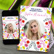 Foto Quinceanera Convite com flores de festa mexicana, para a comemoração de aniversário de 15 da sua filha. Este tema floral Quinceañera apresenta flores coloridas de arte folclórica mexicana, roteiro elegante e tipografia no estilo ocidental. A parte de trás do cartão tem uma fonte floral feita das mesmas flores de fiesta e seus detalhes de convite. O modelo está pronto para você personalizar o cartão com sua foto e todos os seus detalhes pessoais para sua festa mexicana Fiesta Quinceanera. Por favor, procure na minha loja itens de correspondência e coordenação.
