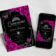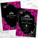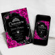 Convites Quinceanera Fuchsia Pink Black Silver Floral