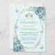 Este adorável convite da quinceañera apresenta flores azul-aquarela turquesa em dois cantos em um fundo turquesa pálido. Um quadro geométrico dourado envolve o texto, que é tocado por uma tiara dourada. A palavra "Quinceañera" e o nome do convidado de honra aparecem num elegante guião dourado, com o texto remanescente na fonte serif cinza. Pequenas borboletas de taruga acrescentam um toque decorativo.