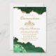 Convidado de Quinceanera, Elegante Elegante Emerald Green e Dourado Marble Agate. Dourado Script. Dourada Coroa.