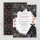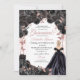 Convites Quinceanera Inv Floral Elegante Preta e Rosa Doura