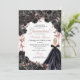Convite de Aniversário para Quinceanera Floral, Dourada Elegante, Negra e Rosa