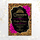 Convites Quinceanera - Leopardo Imprime Dourado Rosa Vermel