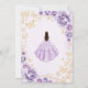 O convite para comemoração do ouro roxo Lilac Quinceanera. Apresenta uma garota morena em vestidos de capa de bola, fonte de script, borboletas de ouro, rosas de aquarela e tiara. Perfeito para uma elegante celebração de glam estilo princesa. Personalize com seus próprios detalhes. Impressos convites Zazzle ou modelo de impressão digital instantânea para download.