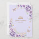 Lilac roxo, ouro e Quinceanera branca. Apresenta fontes de script, borboletas douradas, rosas de aquarela e tiara. Perfeito para uma elegante celebração de glam estilo princesa. Personalize com seus próprios detalhes. Impressos convites Zazzle ou modelo de impressão digital instantânea para download.