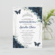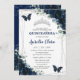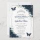 Convites Quinceañera Marinho Azul Borboletas Florais Prata