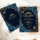Marinho azul e ouro Quinceanera convite para comemoração. Recursos, fontes de script, borboletas douradas, rosas de aquarela e tiara. Perfeito para uma elegante celebração de glam estilo princesa. Personalize com seus próprios detalhes. Impressos convites Zazzle ou modelo de impressão digital instantânea para download.