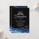 Marinho azul, preto e prateado, convite para quinceanera. Elegante design moderno com cor azul-real de água agate marble geode fundo, faux glitter prata, tiara confetti e fonte de script de tipografia. Trendy convida o cartão perfeito para uma comemoração de 15 de na moda. Impressos convites Zazzle ou modelo de impressão digital instantânea para download.